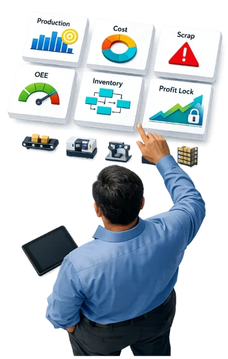 With our Manufacturing Profit Lock & Cost Control System, Plant Directors & Heads, Supply Chain Managers, ERP & MIS Managers, Profit & Performance Analysts, etc. can save Time and Increase Their Manufacturing Business Revenue.